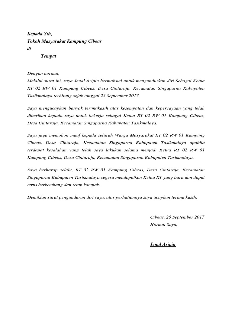 Contoh surat pengunduran diri ketua rt berbagai contoh.